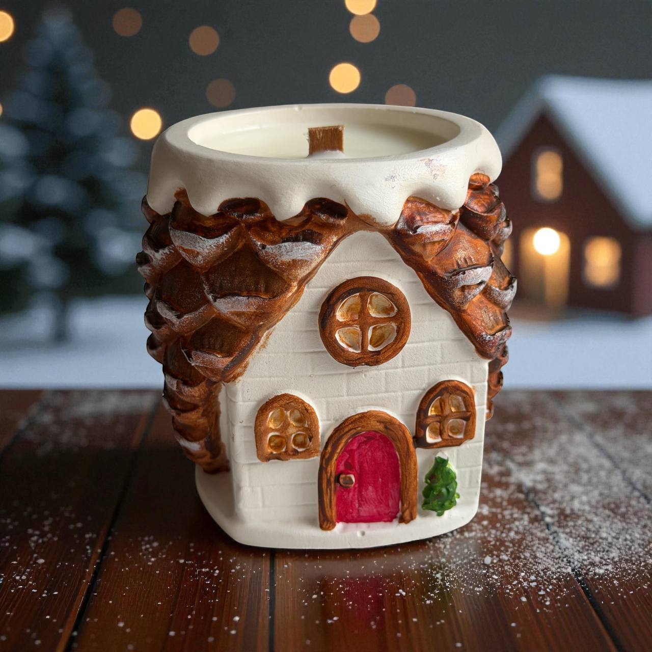 Каждый домик — выполнен из гипса и расписан вручную, будто из снега и сказки. Он похож на кедровую шишку, припорошенную инеем.