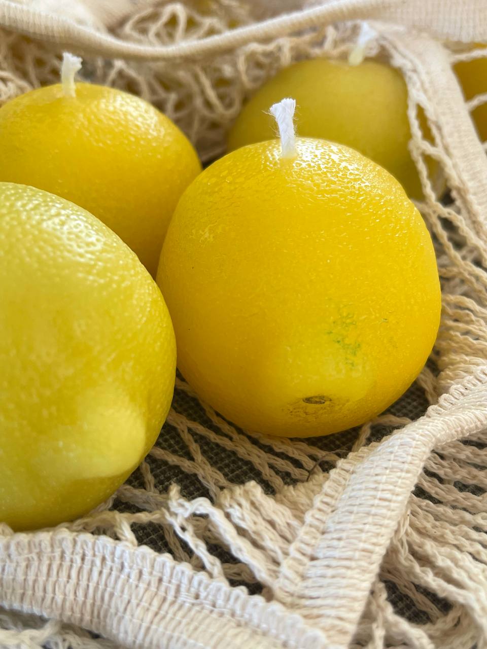 Это лимон-свеча. Настоящая форма — потому что мы буквально сняли слепок с лимона (прости, фрукт, ты был великолепен).
