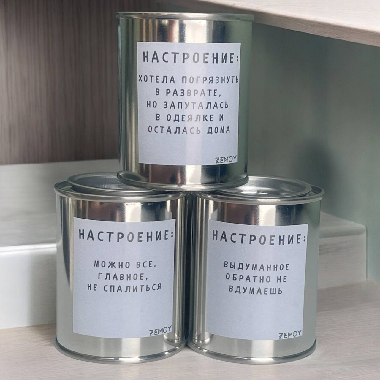 Если взять 4 баночки НАСТРОЕНИЯ, то можно собрать отличный подарочный комплект, который точно заставит получателя улыбнуться)