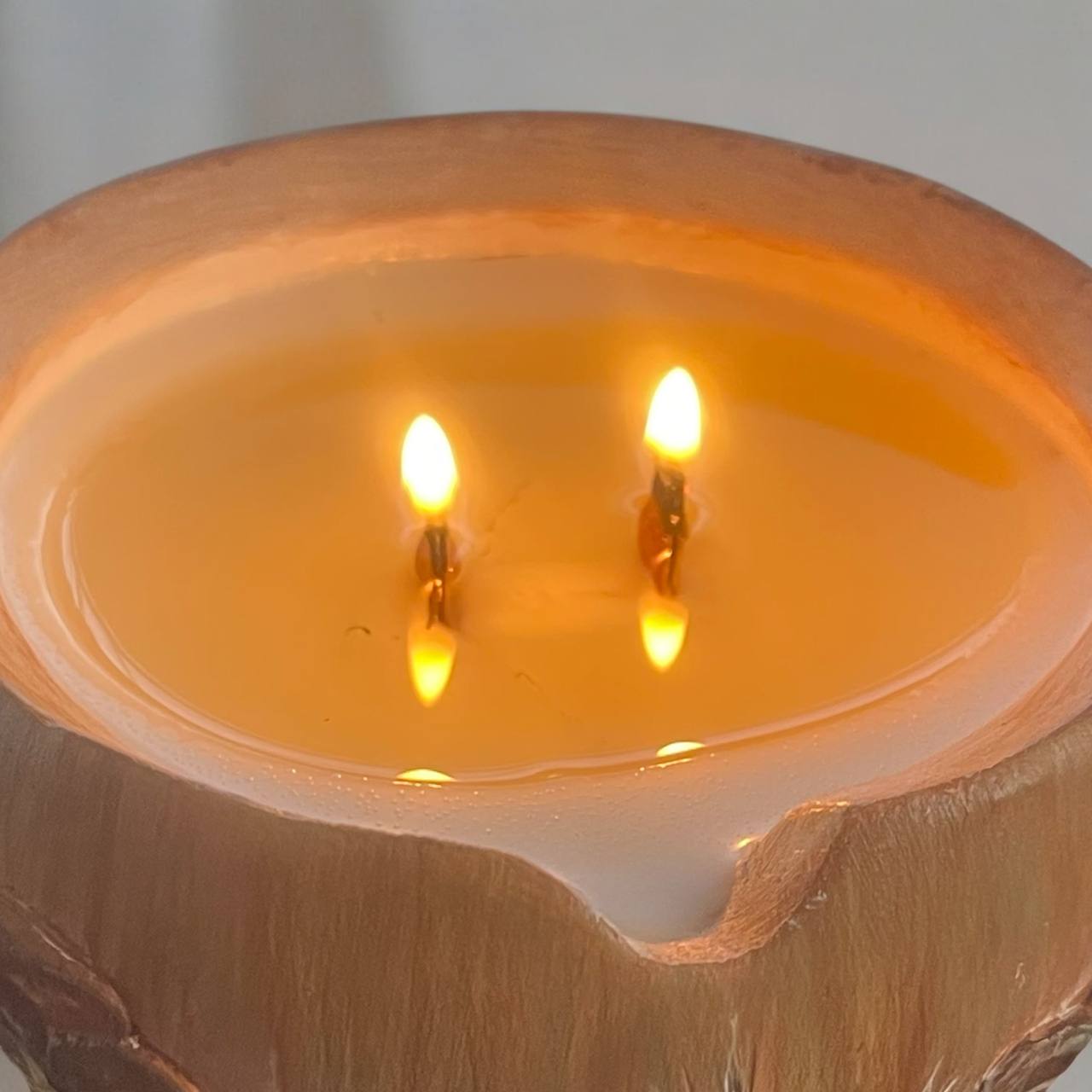 Подсвечник из гипса, словно выточенный руками художника, добавляет интерьеру утонченности и натурального шарма. Его матовая текстура и мягкие линии напоминают о весенней свежести, а пламя двух деревянных фитилей танцует в такт вашим мечтам, создавая уютный танец света и тени.