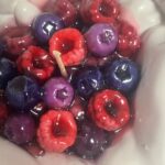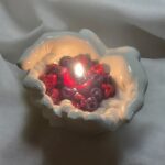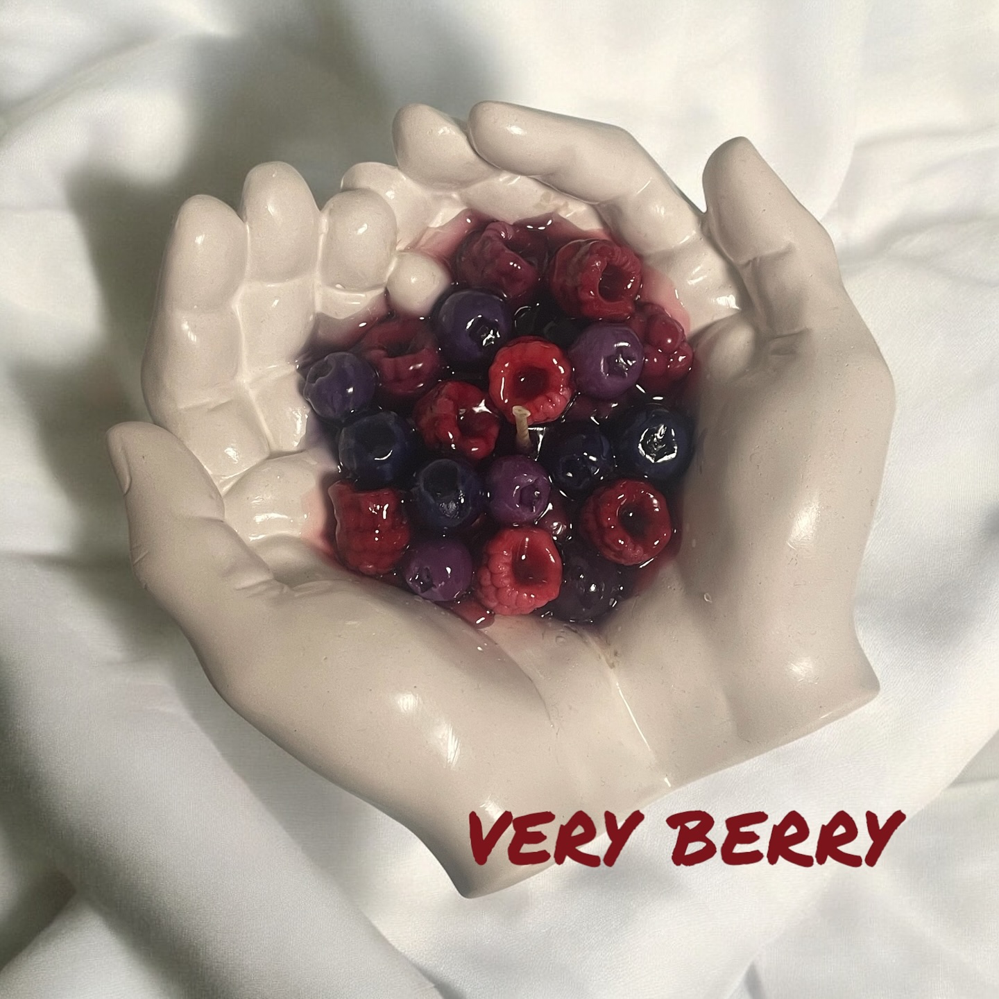 Нежные гипсовые ладони держат спелую малину, чернику, ежевику и морошку – каждая ягодка сделана из натурального соевого воска. Они будто сочные, только что сорванные, а блеск свечного геля делает их еще более соблазнительными.